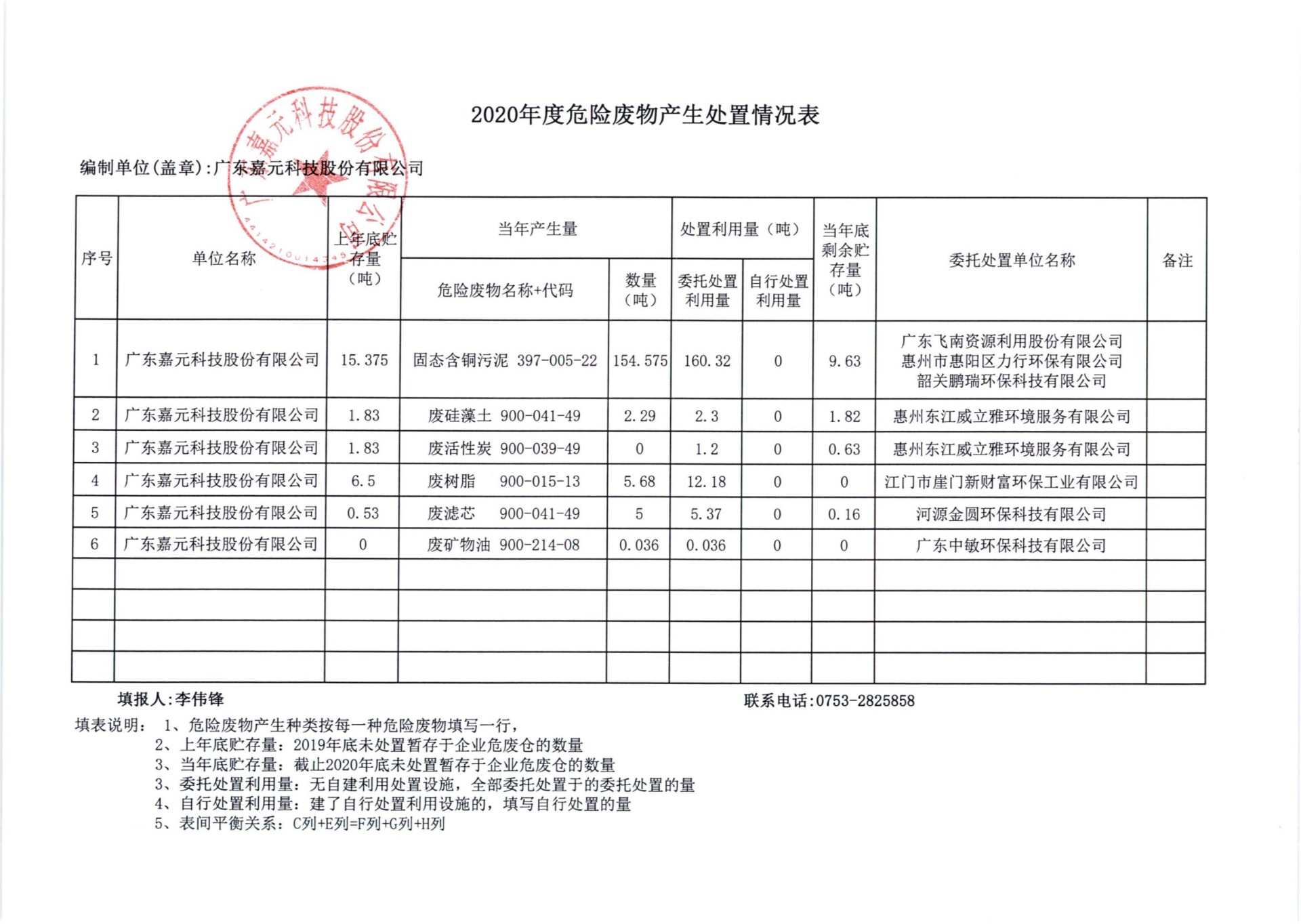廣東嘉元科技股份有限公司現(xiàn)將國家排污許可證中固廢污染防治信息進(jìn)行公示。