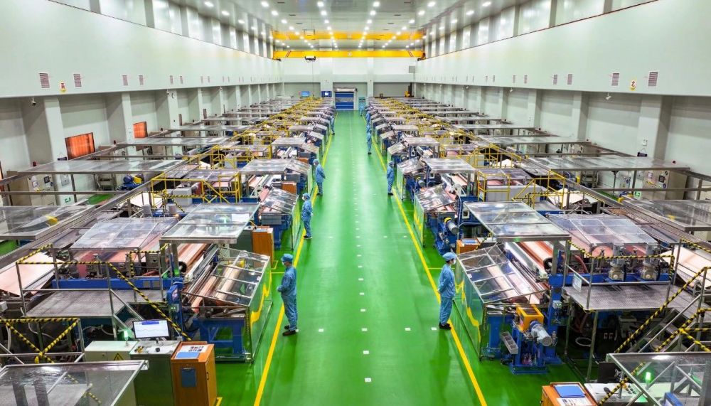 近日,走進(jìn)嘉元科技梅縣區(qū)雁洋總部的鋰電銅箔無塵生產(chǎn)車間,多條生產(chǎn)線同時(shí)開機(jī)運(yùn)轉(zhuǎn),隨著一臺(tái)臺(tái)生箔一體機(jī)卷軸緩緩轉(zhuǎn)動(dòng),一張張薄如蟬翼的銅箔沿著陰極輥滾卷而出;身著防塵服的技術(shù)人員正仔細(xì)核對(duì)著各項(xiàng)數(shù)據(jù),產(chǎn)品合格下線后,再經(jīng)分類、分切、包裝等工序,最后打包入庫,隨時(shí)準(zhǔn)備發(fā)往全國各地。